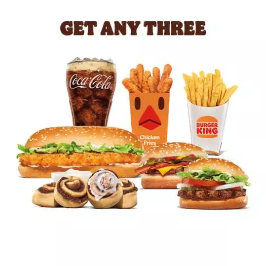 - Sandwich Choice: Swap between Whopper, Bacon Cheeseburger, Chicken Jr., Royal Crispy Chicken, or even Fish.